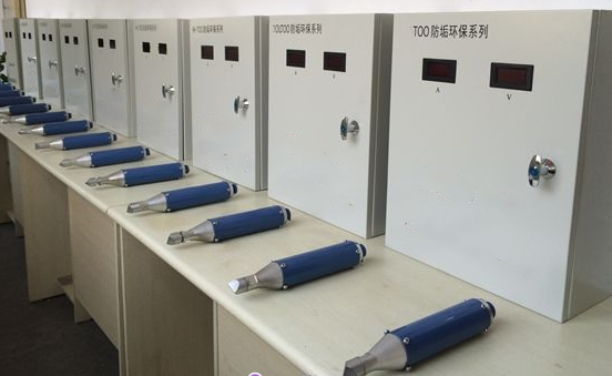 The ultrasonic descaling and anti-scaling equipment is mainly composed of an ultrasonic generator, an ultrasonic signal transmission cable, an ultrasonic energy converter and the pipeline which assembled with an ultrasonic transducer. According to the installation mode, it can be divided into three types: external type, embedded type and built-in type.